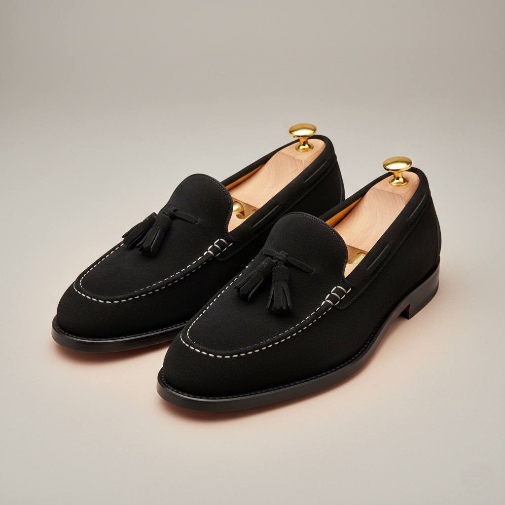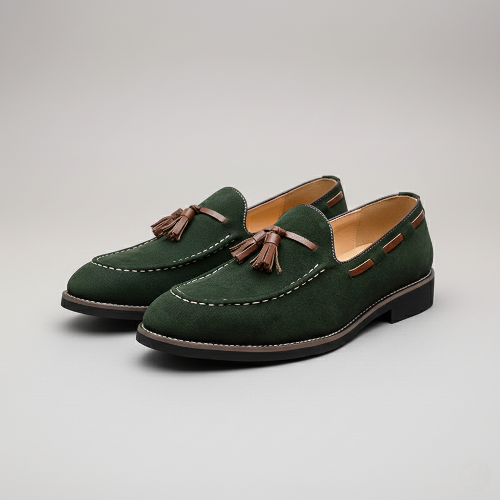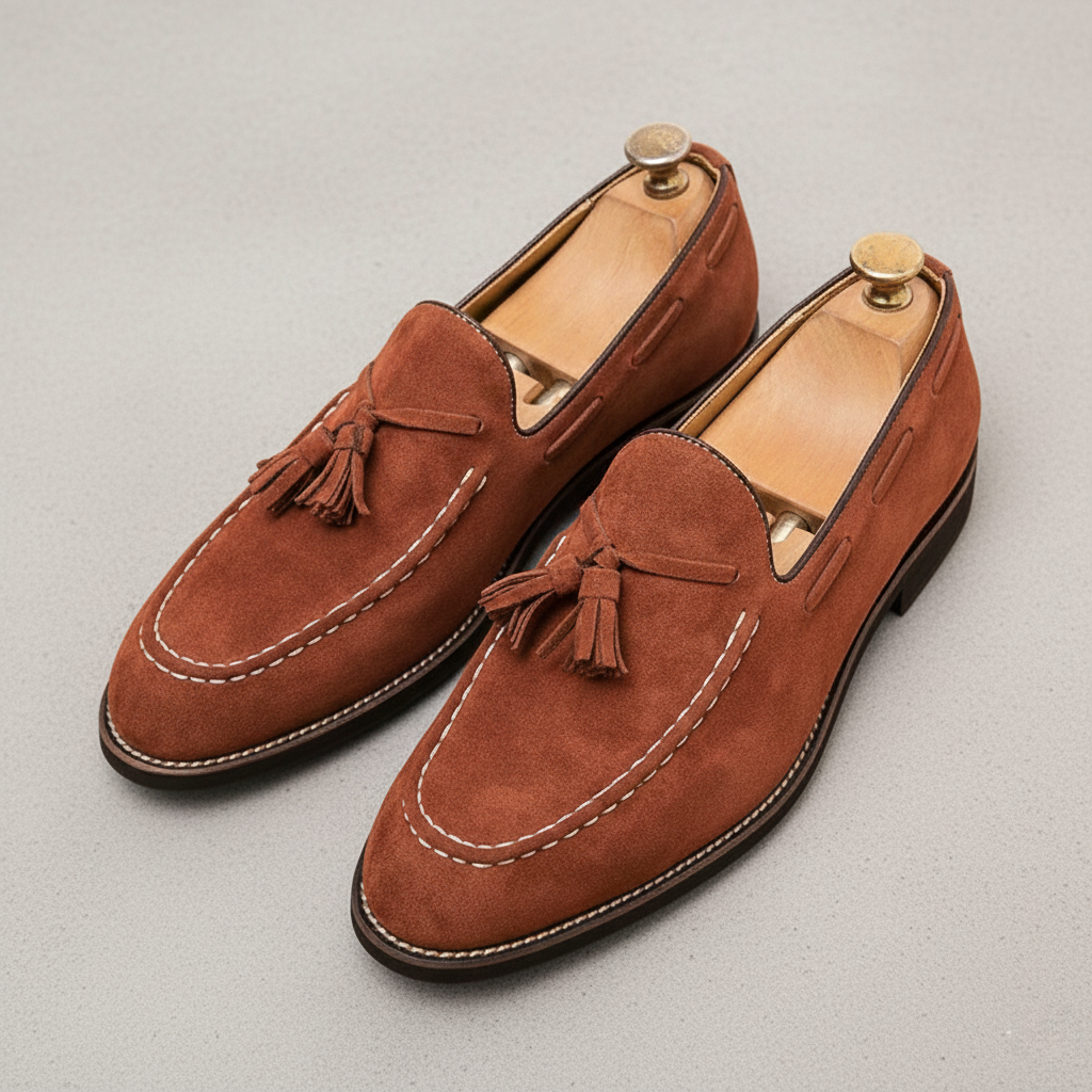 Crafted from soft suede with a refined, matte finish, these tassel loafers offer a balanced structure and natural flexibility. A supportive sole and slip-on construction ensure comfort throughout the day. Designed for polished everyday wear in the city or at work.