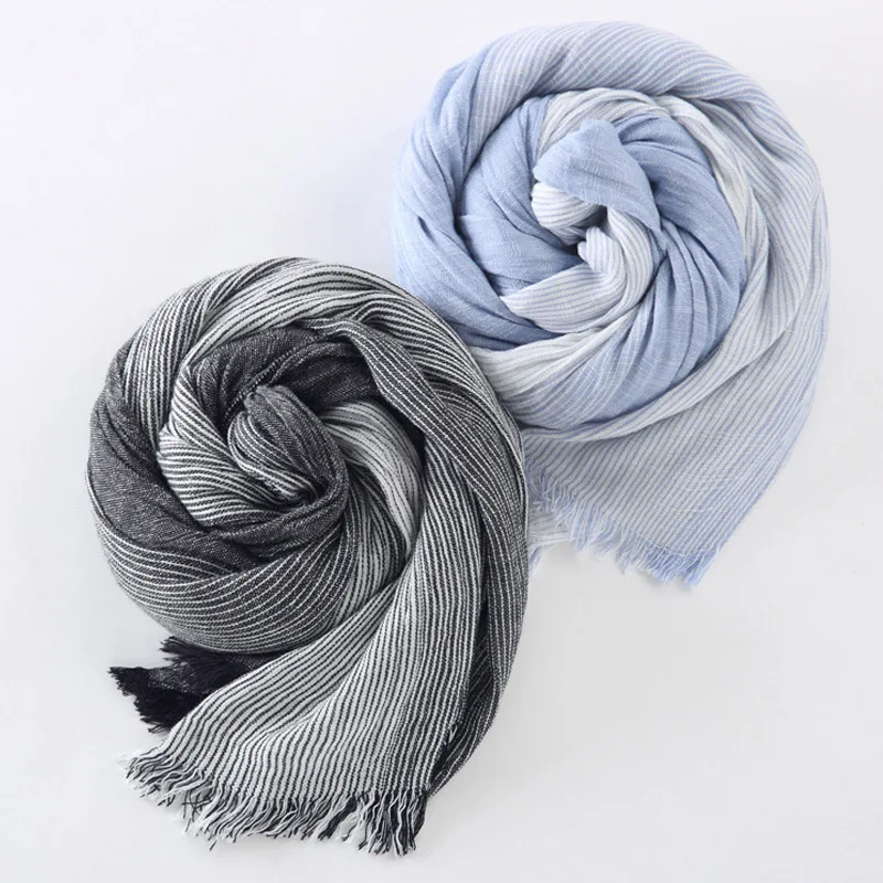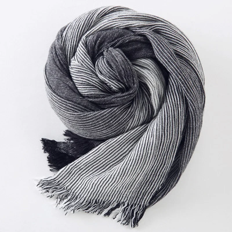 Brand Winter Men's Scarf Fashion Plaid Striped Tassel Shawls and Wrap Bufandas Cachecol Cotton Linen Wrinkled Scarves for Men